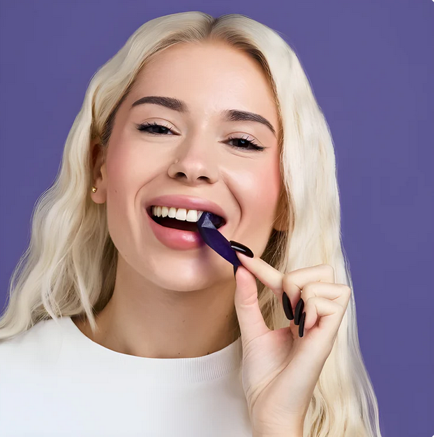 Nasze paski wykorzystują fioletowe tony, aby neutralizować żółte przebarwienia – działa jak fioletowy szampon, ale dla Twoich zębów.